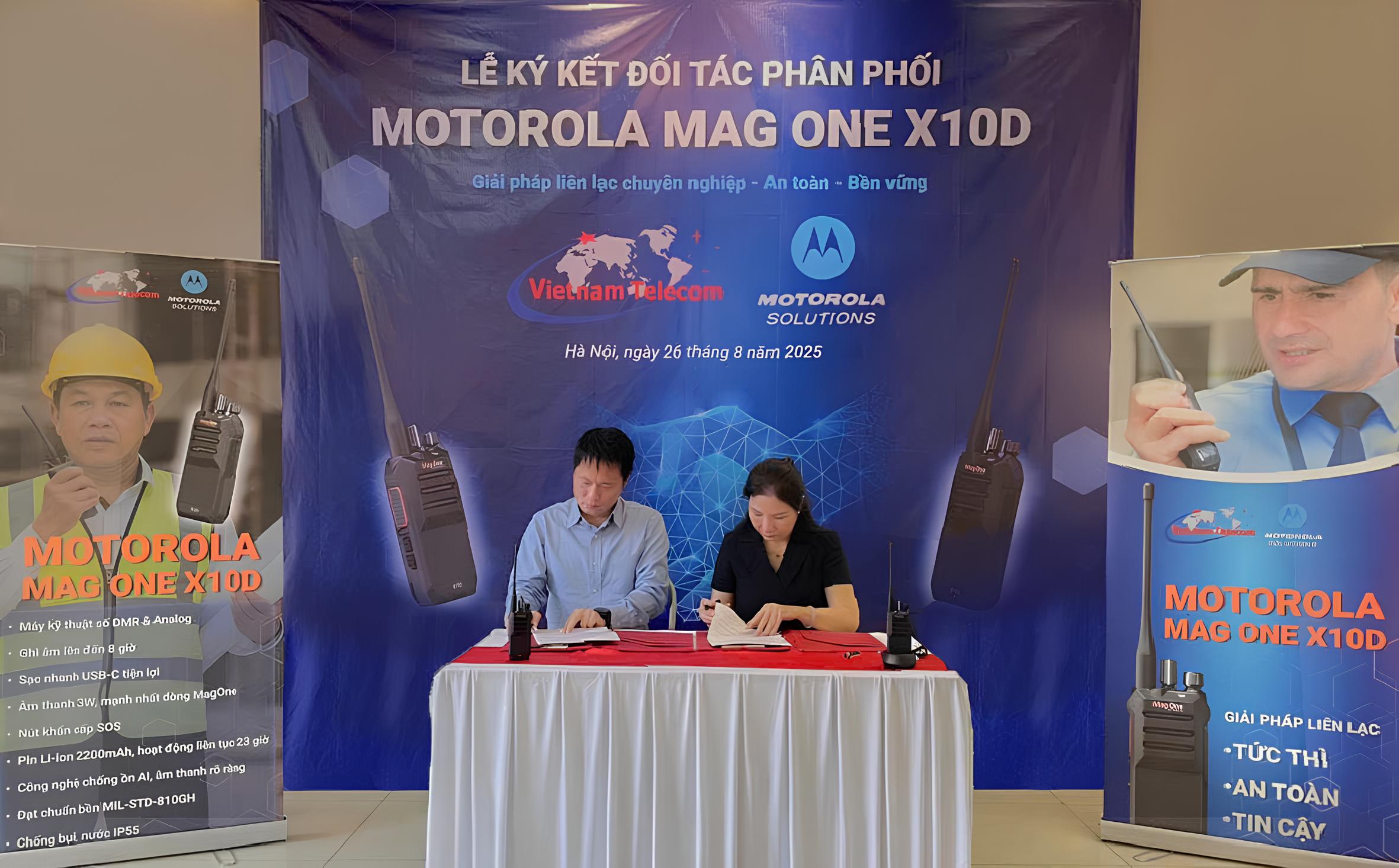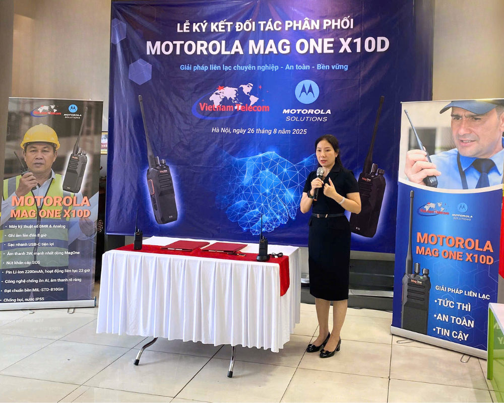 Phát biểu tại lễ ký kết, ông Lý Anh Tuấn, đại diện Motorola Solutions, bày tỏ: “Chúng tôi lựa chọn Vietnamtelecom vì đây là đối tác không chỉ có năng lực, mà còn thực sự thấu hiểu khách hàng Việt Nam. Việc hợp tác này càng ý nghĩa hơn khi đồng hành cùng sản phẩm MagOne X10D. Đây là sản phẩm được thiết kế để mang lại sự bền bỉ, âm thanh rõ nét và khả năng đáp ứng linh hoạt cho nhiều ngành nghề khắt khe như an ninh, xây dựng, dầu khí hay dịch vụ.