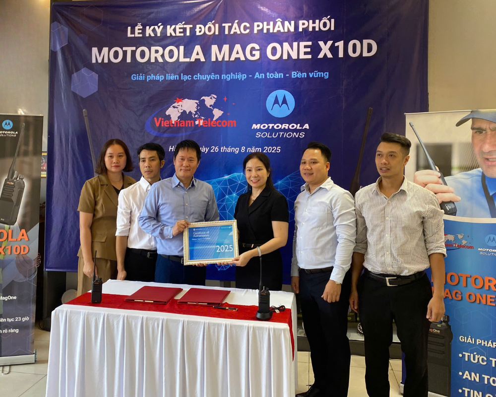 Ngày 26/08/2025, tại văn phòng 326 Lê Trọng Tấn, một sự kiện quan trọng đã diễn ra, đánh dấu bước tiến lớn trong ngành công nghệ viễn thông Việt Nam. Công ty Vietnamtelecom đã chính thức ký kết thỏa thuận hợp tác chiến lược với Motorola Solutions, trở thành đơn vị phân phối dòng bộ đàm Motorola MagOne X10D. Sự kiện này không chỉ khẳng định vị thế của Vietnamtelecom mà còn mang đến cơ hội tiếp cận những công nghệ liên lạc hiện đại nhất cho các doanh nghiệp.